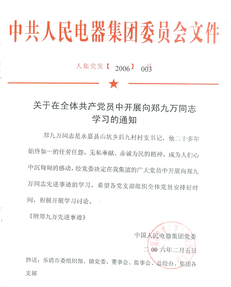 關(guān)于在全體共產(chǎn)黨員中開展向鄭九萬同志學(xué)習(xí)的通知